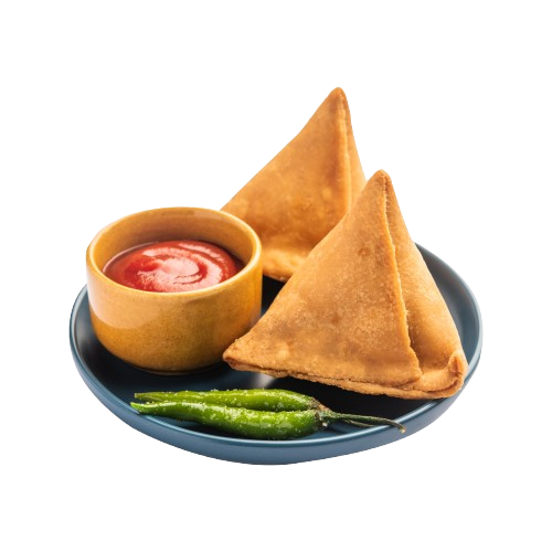Crisp golden pastry pockets stuffed with spiced potatoes and peas, served with chutney.