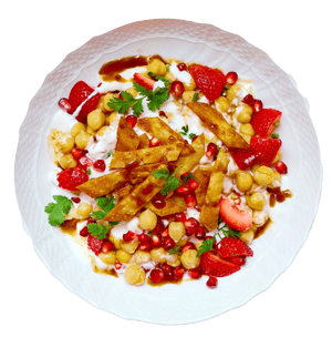Crisp pastry parcels filled with spiced potatoes, layered with cooling yogurt, tangy tamarind, fresh mint chutney, and a delicate sprinkle of house spices.